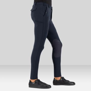 Met een veilige sluiting door de drukknoop en rits, combineert deze rijbroek stijl en functionaliteit. Praktische zakken, waaronder een telefoonzak op het linkerbeen, maken deze broek onmisbaar voor ruiters die comfort en gebruiksgemak waarderen.