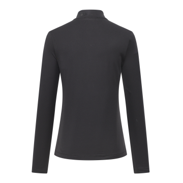 "Blijf stijlvol en comfortabel in het zadel met onze hoogwaardige naadloze longsleeve. De longsleeve is voorzien van een halve rits, opstaande kraag en geribbelde manchetten voor een vrouwelijke pasvorm."